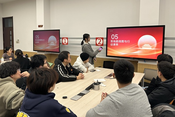 会议伊始,支部成员通过领学宣讲的方式重温了习近平总书记的重要贺信精神,重点围绕科技自立自强与人才自主培养等核心要义进行了深入解读。结合电气专业的特色,俞华珍介绍了新能源发电、智能电网等领域的国家战略布局,明确青年学子应当将个人专业发展与能源强国建设紧密结合。随后,在二十届四中全会精神学习环节,俞华珍向支部成员介绍全会的核心内容,从国家治理现代化总目标的时间节点,到十三大制度优势的时代价值,再到与电气领域密切相关的健全科技创新体系与推动能源革命等部署,层层深入解析全会的精神实质。会议特别聚焦全会提出的治理现代化能力工程,强调青年应当提升制度理解与实践执行能力,主动对接行业发展与国家需求。