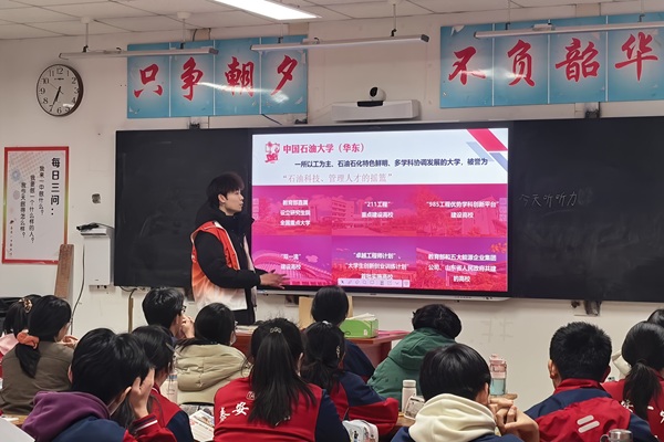 活动前期,实践队成员提前与母校老师沟通对接,明确宣讲流程,筹备宣讲材料,全面梳理石大的办学特色、学科优势、专业设置及备考经验,力求内容充实、实用性强。队员们以泰安一中校训“做一个幸福的人”为初衷,以石大精神为指引,全方位展示石大风采,传递求实创新、团结奉献的石大品格,为高三学子送上指引与力量。