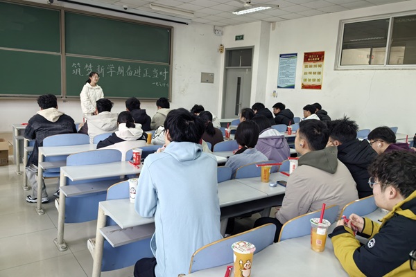 班会伊始,团支书张佳慧围绕新学期团支部工作与团日活动安排进行了简要说明,强调了思想成长与集体建设的重要性。随后,班长李鹏举做重点发言,从学习规划、班级量化管理、科创与发展规划三个方面为同学们指明方向。他提醒学生们本学期课程结课时间较早,需在日常学习中夯实基础,鼓励大家通过班级微信群或私下请教同学、班委解决学业疑问,避免期末复习压力过大。针对班级量化管理制度,他详细介绍了评奖评优、班级事务、个人荣誉等方面的加减分细则,明确该制度将作为入党积极分子竞选、奖学金评选等工作的重要参考,并安排专人负责统计上学期至今的班级事务参与情况。此外,他还结合自身观摩科创比赛的经历,分享了“大挑小挑”“互联网+”等赛事的备赛经验,提醒学生们重视科创竞赛对综测与保研的重要意义,鼓励大家主动了解赛事信息、积极参与实践,同时收集学生们在学习、考研、就业等方面的问题,计划后续邀请老师开展专题解答。