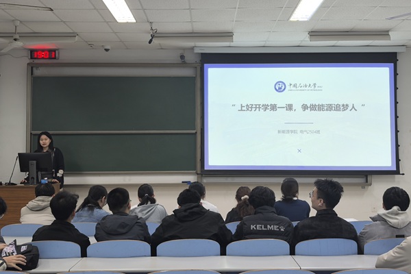 活动伊始,隋一诺介绍了本次团日活动的主题与流程,强调了活动对于促进思想交流、规划未来发展的重要意义。活动分为“特色实践”与“交流践行”两个主要环节。在特色实践部分,多位同学上台,结合寒假期间的实践经历,围绕新能源行业发展趋势、基层社区服务、乡村振兴等社会热点议题分享了调研成果与个人思考。随后,活动进入职业规划研讨部分。同学们以小组形式,就如何将“能源报国”的初心与个人学业目标、未来职业方向相结合进行了深入研讨。讨论聚焦于如何对接国家“双碳”战略等重大需求,在新能源领域找准自身定位,制定切实可行的学习与发展计划。随后,班长郭淏宇结合前期理论学习与本次实践分享的体会,讲述了自身的学习感悟,并立下了新学期的具体目标。最后,隋一诺对本次活动进行了总结。她肯定了同学们在分享与讨论中展现出的思考深度与责任感,并希望大家能将今天的共识转化为实际行动,牢记“家国同心、艰苦奋斗、惟真惟实、追求卓越”的石大精神,在未来的学习生活中不断锤炼本领,勇于担当使命。