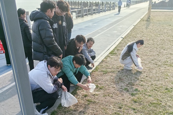 活动伊始,王子男作动员讲话。他强调在学雷锋纪念日与中国青年志愿者服务日之际,作为新时代青年,更应主动将奉献精神融入日常、化为经常。随后,他就活动安全、分工安排作了详细说明,并现场宣读了环保倡议书,号召大家以实际行动守护湿地生态,践行绿色低碳理念。在简短而庄重的启动仪式后,同学们按照预先划分的小组,携带垃圾夹、垃圾袋等工具,分工协作、分区域开展垃圾清理工作。大家沿着公园步道、观景平台及海岸沿线,对塑料瓶、烟头、泡沫碎片、废弃包装袋等各类垃圾进行了细致捡拾。清理过程中,同学们严格进行垃圾分类,将可回收物与其他垃圾分别装袋,并统一运送至指定回收点,以实际行动践行绿色环保理念。清理工作结束后,全体同学围坐在一起,分享此次净滩活动的感受。通过亲身体验,大家深刻认识到生态保护的重要性和紧迫性,也更加理解了雷锋精神中“服务人民、助人为乐”的时代内涵。最后,全体人员整理场地、清点工具,集体合影留念,活动在有序返程中圆满结束。