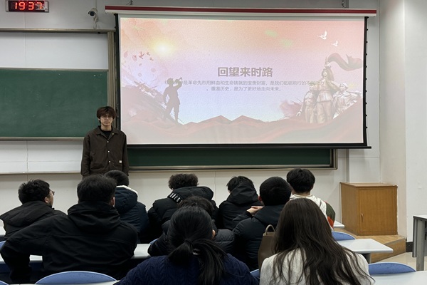 团日活动伊始,孙之然以 “回望来时路” 为开篇展开讲解,介绍了红色精神的历史由来与时代价值,让团员们对红色精神的时代价值形成初步认知。随后,在红色事迹学习环节,他依次讲述革命先烈为民族独立和人民解放献身的不朽功勋、沂蒙红嫂的奉献故事、红军战士的长征壮举,展现红色精神背后的初心与坚守。在“精神的内涵”解读部分,他从忠诚坚定的信念、艰苦奋斗的作风、服务人民的宗旨三个方面,详细剖析红色精神的核心要义,阐释其在新时代的传承意义与实践要求。活动还明确了红色精神践行方向,倡导团员们将红色精神融入日常学习生活,以英雄为榜样锤炼本领、主动担当,用实际行动传承红色基因。
