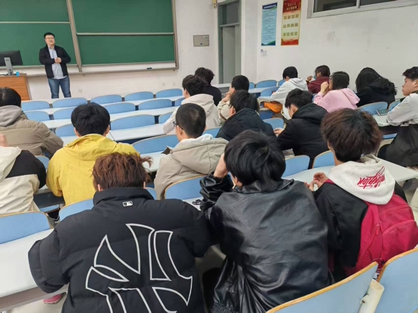随后,徐文刚围绕学生未来发展问题展开职业规划指导,分别从保研、考研、留学、就业四大发展路径给予建议,结合实际案例讲解各路径的准备要点、时间规划与核心要求。他特别叮嘱同学们,不必将发展方向局限于单一选择,要客观审视自身优势与兴趣,理性分析发展形势,多维度探寻适合自己的成长道路。
