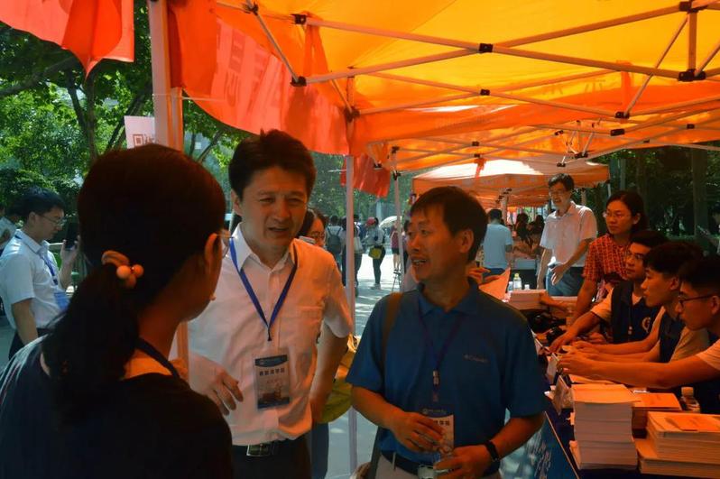 迎新工作中,校领导和院领导分别到迎新现场视察,关心2019级新生入学报到情况,亲切的与新生及家长交流。