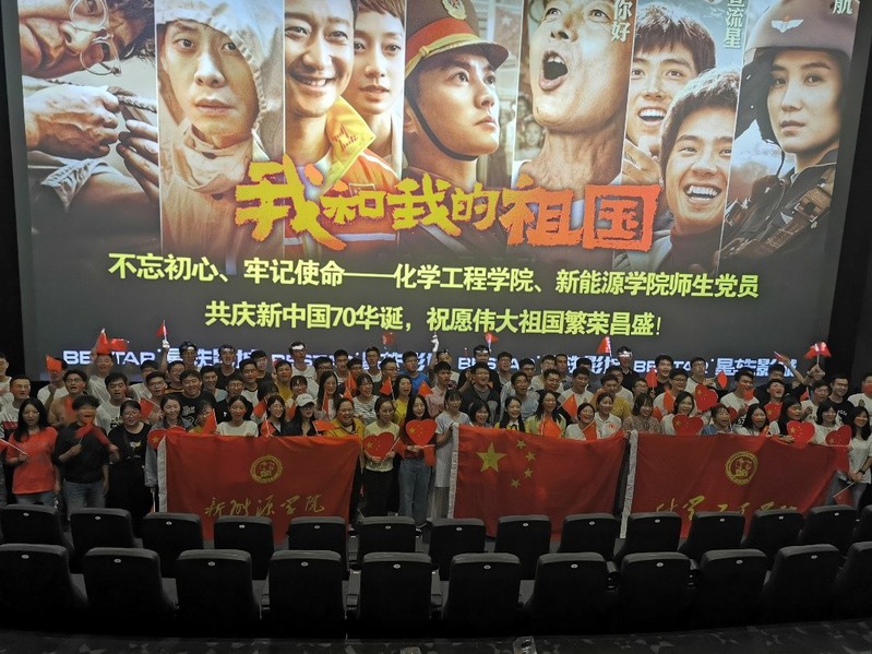 为隆重庆祝中华人民共和国成立70周年,弘扬爱国主义精神,结合学校“不忘初心、牢记使命”主题教育工作安排,增强广大师生党员的光荣感和使命感,引领其以更饱满的热情投入到工作学习中去,9月30日下午,yl88858永利中国、化学工程学院党委组织90余名师生党员集中统一观看大型电影《我和我的祖国》。