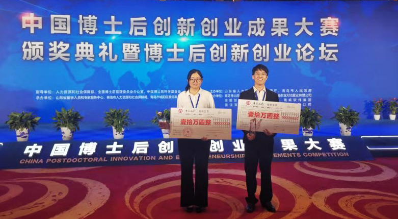 王增丽(左)获中国博士后创新创业成果大赛团队组金奖
