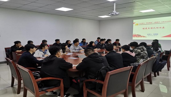 会议伊始,张克舫同志以“制度自信从何而来”为题,开启了此次主题教育。“橘生淮南则为橘,生于淮北则为枳。”一个国家选择什么样的治理体系,是由这个国家的历史传承、文化传统、经济社会发展水平决定的,是由这个国家的人民决定的。中国特色社会主义制度之所以行得通、有生命力、有效率,是因为它是从中国的社会土壤中生长起来的。“鞋子合不合脚,自己穿了才知道。”中国特色社会主义制度和国家治理体系到底好不好,看的是中国的发展,看的是中国人民的拥护。新中国成立的70周年,是在风雨兼程中创造辉煌的70年,“千磨万击还坚劲,任尔东南西北风。”这是中国特色社会主义制度和国家治理体系强大生命力和巨大优越性的生动写照。会议最后,张克舫同志教导支部成员:“各位同志要不忘初心、牢记使命,努力学习专业知识,提高个人文化素养,同时要坚定制度自信,增强走中国特色社会主义政治发展道路的信心和决心。”