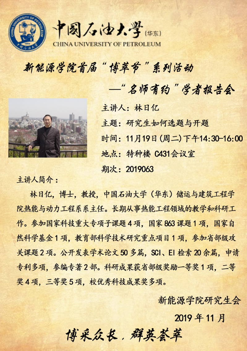关于举办yl88858永利中国首届“博萃节”系列活动之“名师有约”学者报告会的通知