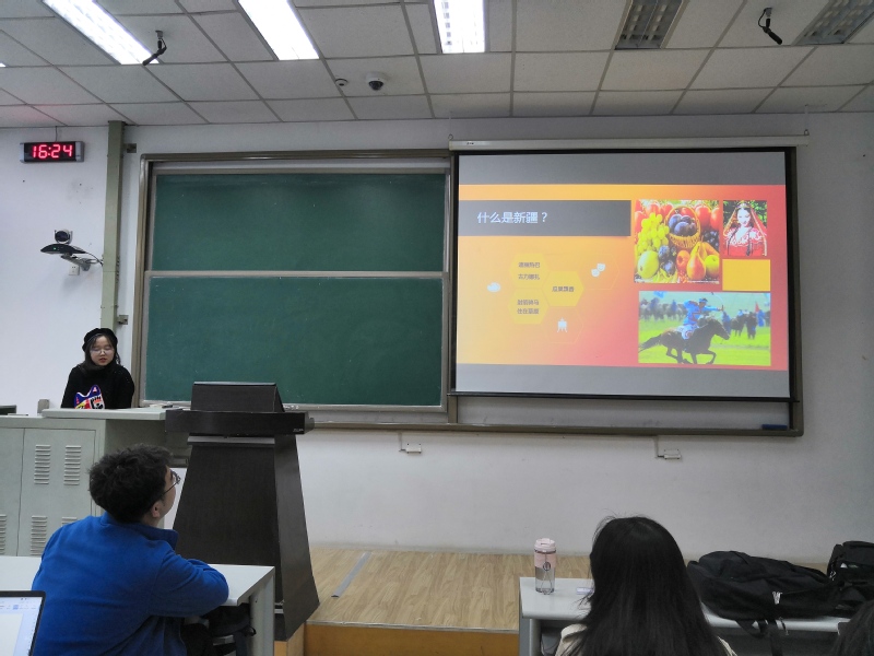 此次活动有三个环节,分别是为家乡说句话、听听家乡话和赏家乡美食美景。分享会上,由来自新疆的孙若茜、来自山西大同的李鑫以及来自甘肃的马思源展示自己的家乡,为家乡代言。活动前期,他们收集了大家对其家乡认识和了解,其中,“新疆高考有骑马射箭”、“大同人家里都有矿”这几个“误解”较为普遍。三位成员在分享会上替家乡说话,为家乡“正名”。来自新疆的孙若茜说,“新疆高考和大家一样,并没有骑马射箭。新疆近几年取得了很大发展,城乡建设紧跟时代步伐,新疆也是一样的很繁华”。来自大同的李鑫说,“煤都大同不等于空气质量差,虽然大同市产煤多、烧煤多,但是政府一直把环保作为重中之重,我们的空气质量在省内也是数一数二”。赏家乡美食环节中,他们展示了家乡美食,例如新疆的羊肉牛肉各种串,大同的莜面豆面刀削面,甘肃的兰州牛肉面等。最后,他们还展示了家乡话,支部成员对此产生了极大的兴趣,根据台上提供的语境,积极猜测家乡话的含义,整个活动达到了高潮。