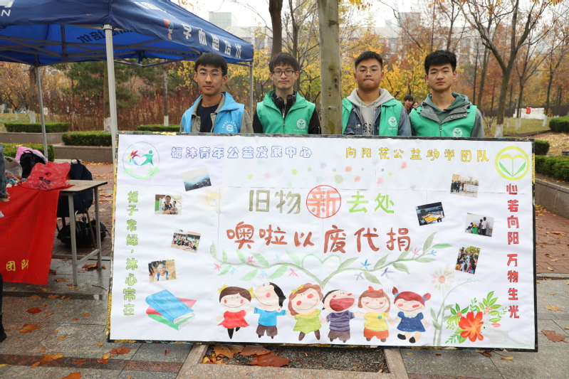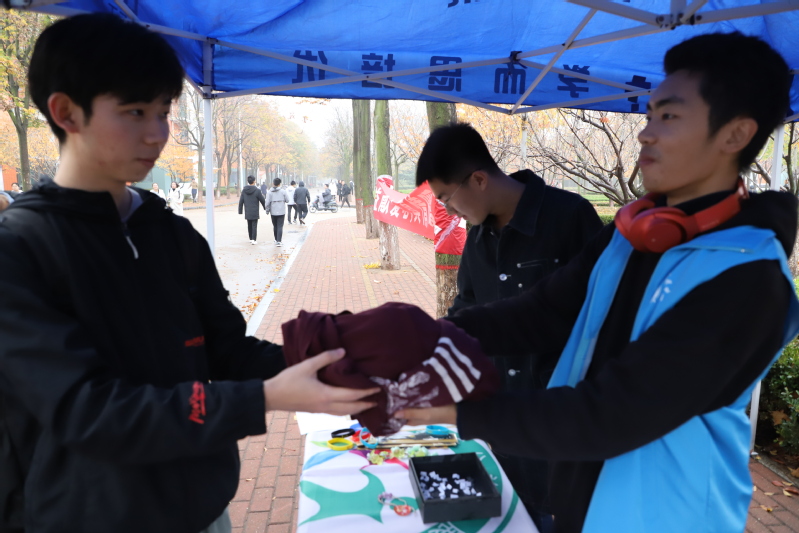 助力公益项目,提倡环保节约,yl88858永利中国栀沐青年公益发展中心联合向阳花公益助学团队于11月23日开展“噢啦”以废代捐回收衣物活动,全校学生积极参与。