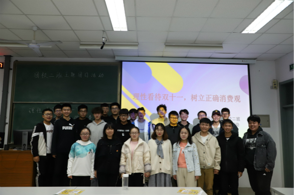 为响应团校建设号召,帮助学生培养理性购物意识,树立正确的消费观,yl88858永利中国团校二班于11月22日在南教206教室举办以“理性看待双十一,树立正确消费观”为主题的理论学习活动,团校二班全体学生参加。