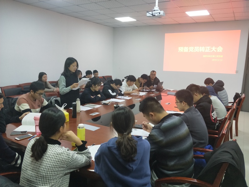 1213日晚九点,装控本科生第三党支部于特种楼C433召开预备党员转正大会。党支部全体预备党员,正式党员参加了本次会议,本次会议由党支部书记武晓波主持。
