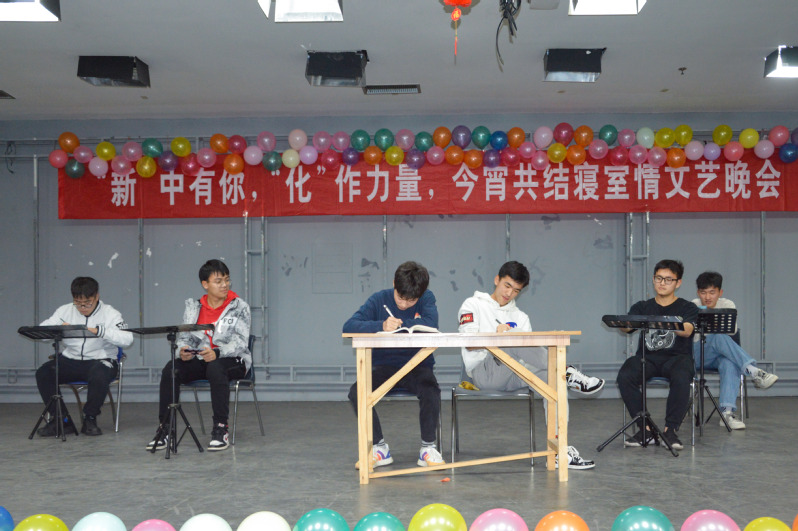 本次晚会,各参赛寝室以及各专业分别为观众带来歌舞串烧、朗诵、武术、舞台剧等11个节目。晚会伊始,化学工程学院艺术团舞蹈队带来的开场舞《大碗宽面》,拉开了晚会的帷幕。而后,参赛寝室221和206联合带来的歌曲《我的天空》;427、435寝室带来的歌曲《没有名字》以及421寝室带来的舞蹈《新宝岛》,点燃了现场气氛。武术表演《拳风刀闪乱春秋》铿锵有力,受到观众的好评;诗朗诵《一切,这也是一切》多次收获观众的呐喊与欢呼,歌曲《comfortable numb》凭借舒缓的节奏博得了全场观众的掌声。除此之外,各专业的节目也陆续登场。环保设备工程专业带来的情景剧《年少有你》将晚会推向高潮,过程装备与控制工程专业带来的舞蹈串烧《奇葩猩球》和电气工程专业带来的《happy bang bang roll》分别给现场观众带来一场视觉和听觉盛宴。最后,晚会在能源动力工程专业带来的《漂洋过海来看你》中拉下帷幕。