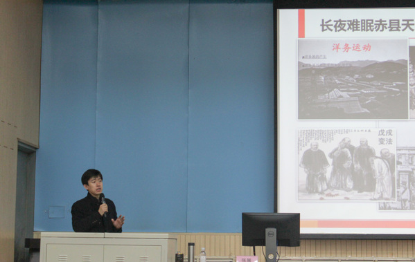 团歌声声嘹亮,团课正式拉开帷幕。团课之初,张展以提问的形式引发团校学员对当代青年责任与担当的思索。紧接着,他以近代中国“长夜难眠赤县天”的屈辱历史为切入点,列举了近代中国各阶段代表性的英雄儿女及其热血事迹,来阐释青年人在国家、时代发展进程中所起到的巨大推进作用,激励当代青年要抱“为有牺牲多壮志,敢叫日月换新天”的壮志,使其主动承担时代赋予青年的责任。其中,他着重强调:横有千古,纵有八荒,中国正参与创造并身处百年未有之大变局,年轻人立于时代之巅,更要树立道路自信,有自己的判断力,不轻易被西方的舆论所误导。随后,张展通过对比中西方文化制度等方面的差异,深入浅出的为在场学生讲解了民主、自由、人权等词在中国的新发展,新含义。最后,张展对未来寄语,勉励团校学员积极承担时代赋予的使命,不断上下求索,谋求自身与国家的发展。