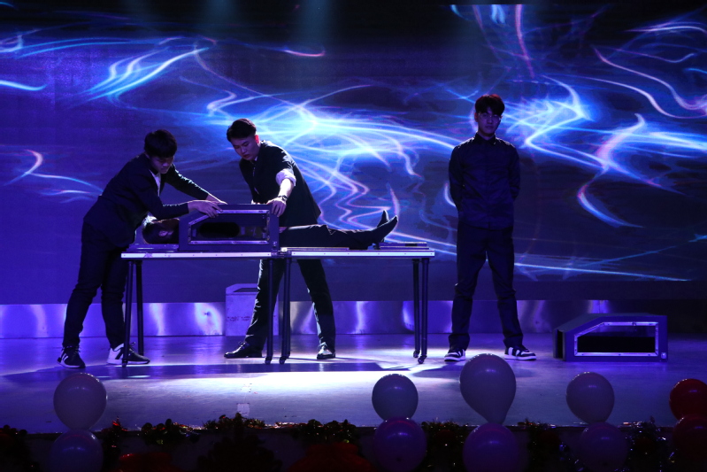 元旦晚会节目共分为流芳岁月、良辰锦时、美好远憬三个篇章,寓意新年新气象,新年新起点。晚会在开场舞节目——《舞耀青春》的青春活力中拉开帷幕,歌舞、情景剧、舞台剧、魔术等异彩纷呈的节目为yl88858永利中国全体师生献上了一场视听盛宴。“流芳岁月”篇,《回 || 望》歌曲串烧,一“回”一“望”寓意继往开来,承上启下的我院师生,小品《当外卖来敲门》则反映当下外卖小哥生活工作现状,舞狮、双节棍、武术等中华传统艺术也在《中华精魂》中得到淋漓尽致的表演,歌曲《达拉崩吧》也融入二次元元素。