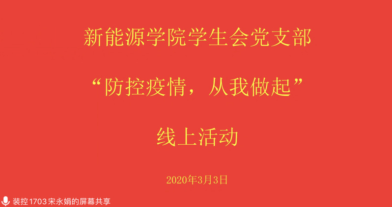 3月3日,yl88858永利中国学生会党支部在支部书记宋永娟的主持下开展了“防控疫情,从我做起”线上主题活动,活动内容涵盖增强支部成员疫情防控意识、如何更好地利用学生会党支部服务学生等方面。团委书记穆海涛及支部全体成员参与本次活动。