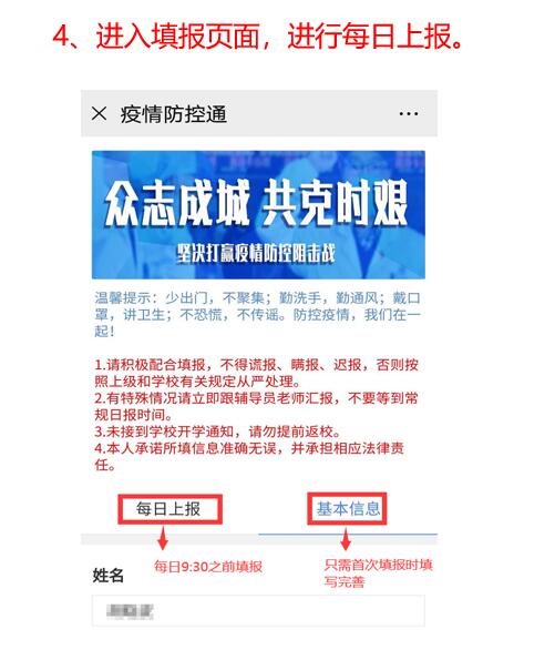2020年3月1日起,每日上午9:30之前,通过“疫情防控通”系统填报每日情况,直至疫情结束。