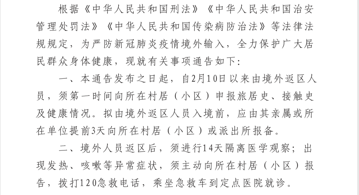 关于加强新冠肺炎疫情境外输入防控工作通告