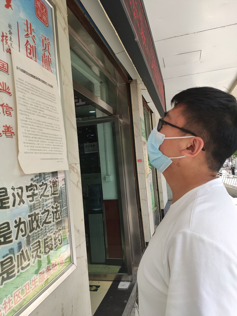 图为调研队员参观村委会的文书贴告 严瀚摄