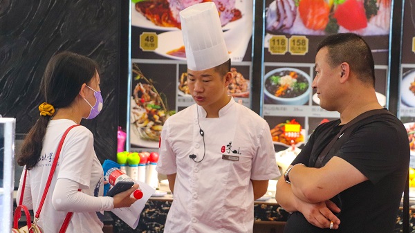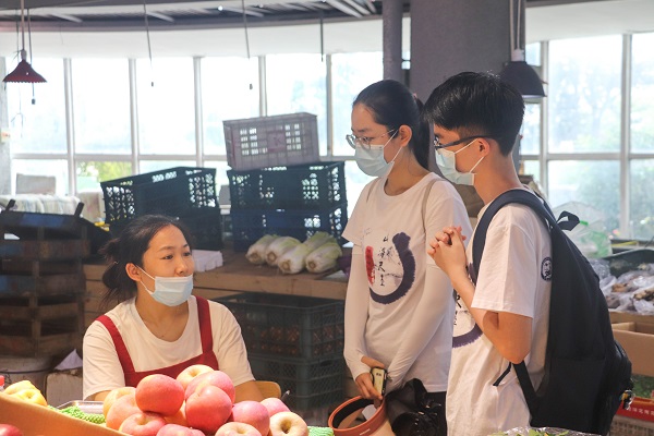 实践队员采访海鲜市场工作人员 高昶摄