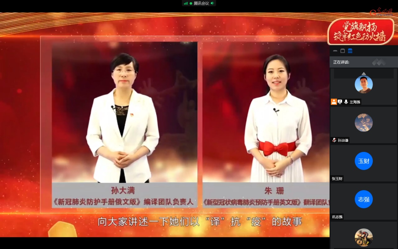 本次微党课介绍了我校与兰州大学、北京交通大学、西南大学以及中央音乐学院五所高校抗疫的故事。其中我校外国语学院孙大满教授团队翻译的俄文版以及朱珊副教授团队翻译英文版《新型冠状病毒肺炎预防手册》体现了我校教师的责任担当,向世界传递中国的战“疫”经验。微党课讲述的一个个平凡而又伟大的战疫故事,充分体现了中国共产党在面临重大艰难险阻时强大的凝聚力和组织力,始终牢记把人民群众的利益放在第一位,高校各级党组织和广大党员践行共产党人的初心和使命,让党旗始终高高飘扬在疫情防控的全过程全方位。