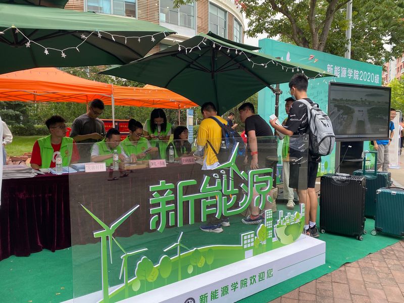 学院迎新点设置在荟萃餐厅西南角,用绿毯铺就,并布置了“网红帐篷”、“定制祝福”、“起航签名墙”“3D模型”等装饰,营造温馨的“家氛围”和“能源感”,缓解了新生疲惫的状态和紧张的心情。新生报到时可在新生签名墙进行签名活动,再依次完成资格审查、领取一卡通、领取相关纸质材料、领取定制可乐等环节。学院领导、新生班导师同迎新志愿者均在迎新工作现场,一起为前来报道的新生答疑解惑。迎新工作现场,循环播放学院迎新MV。除此之外,学院在迎新点和宿舍楼分别悬挂了欢迎条幅,热烈欢迎新生加入到yl88858永利中国大家庭。