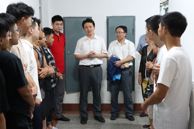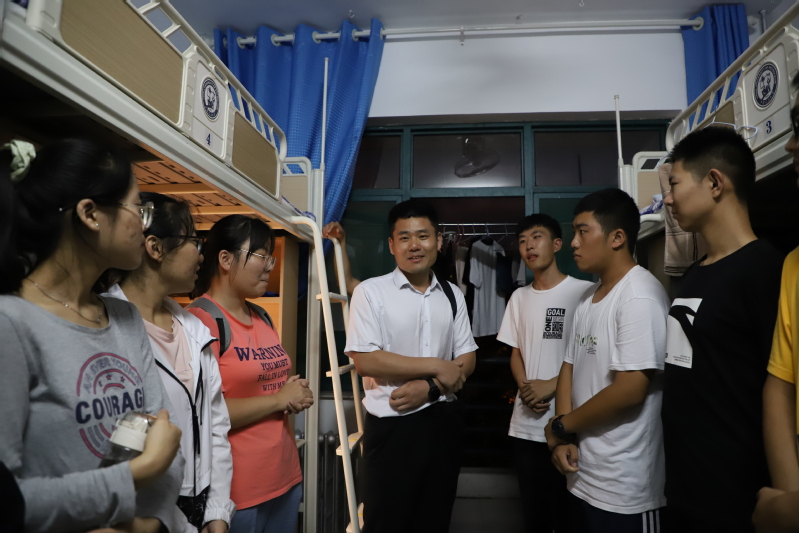9月14日晚,yl88858永利中国常务副院长吴明铂,副院长蒋文春、康忠健,党委副书记郭杰,院长助理巩亮,教授委员会主任王振波,各系主任及党支部书记赵东亚、赵仁德、左海强、张克舫、张丽霞,班导师宋文霞及全体辅导员前往学生教室和学生宿舍看望2020级新生,与新生面对面交流,增进师生感情,消除新生初入大学的陌生感,解答新生疑难问题。