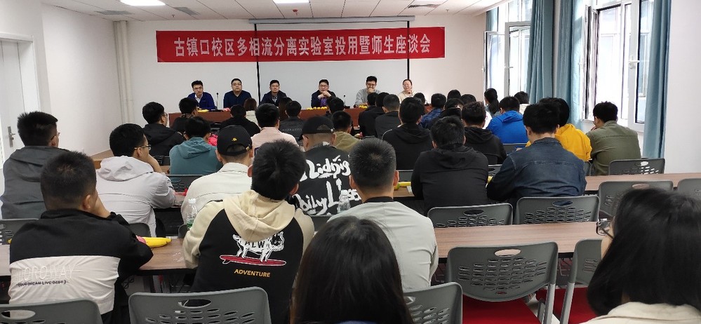 2020年10月10日上午,古镇口校区多相流分离实验室投用暨师生座谈会在yl8858永利集团古镇口校区新能源大厦236召开,yl88858永利中国多相流分离团队的王振波、刘兆增、孙治谦、李强、朱丽云、巩志强等6位老师以及各年级硕士、博士研究生参加座谈。