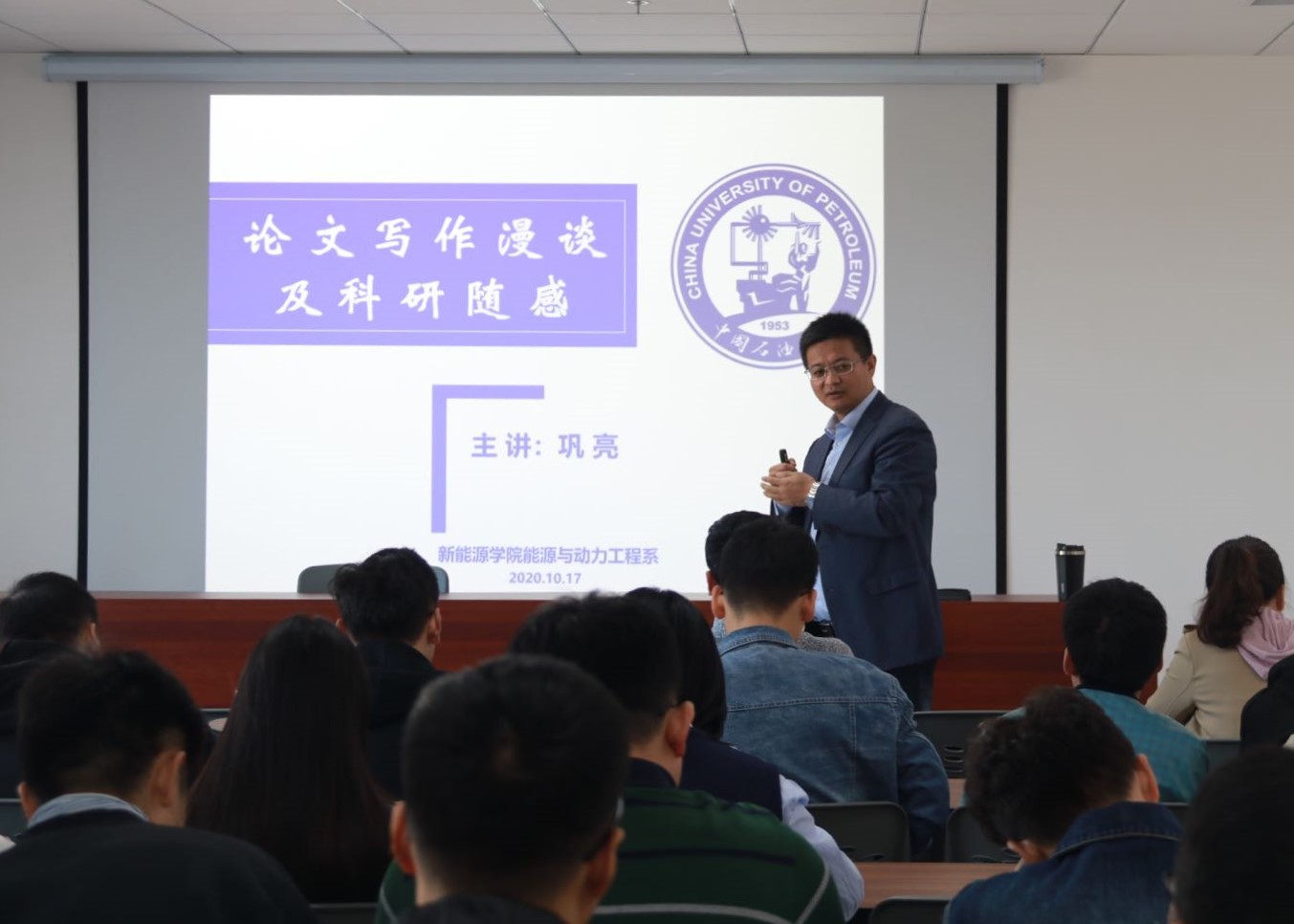 2020年10月17日,yl88858永利中国在古镇口校区山能新能源大厦237教室举办新能源论坛第四期学术报告会,能源与动力工程系巩亮教授作了题为“科技论文写作漫谈”的学术报告,古镇口校区研究生参加本次活动。