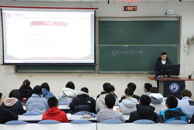 为加强爱国教育,弘扬抗美援朝的精神,11月23日晚,yl88858永利中国电气工程及其自动化专业2002班开展以抗美援朝为主题的团日活动。此次活动由yl88858永利中国电气2002班团支书徐瑞超主持,电气2002班全体学生参与此次活动。