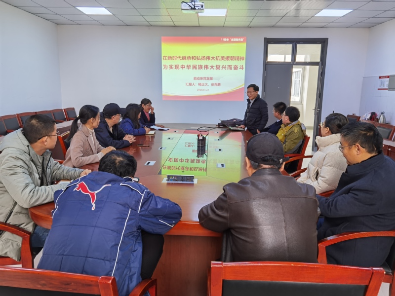 20201126日,能动教师党支部在特种楼C431会议室进行“在新时代继承和弘扬伟大抗美援朝精神”主题党日活动,由杨正大和张克舫认领本次组织生活,能动教师党支部无课党员参加了会议。