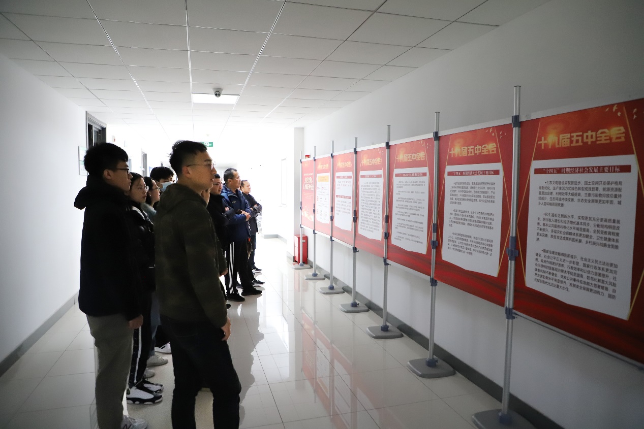学院师生通过展板学习党的十九届五中全会精神