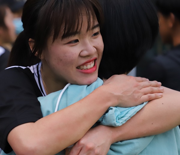 女篮赛后拥抱 刘静秋摄