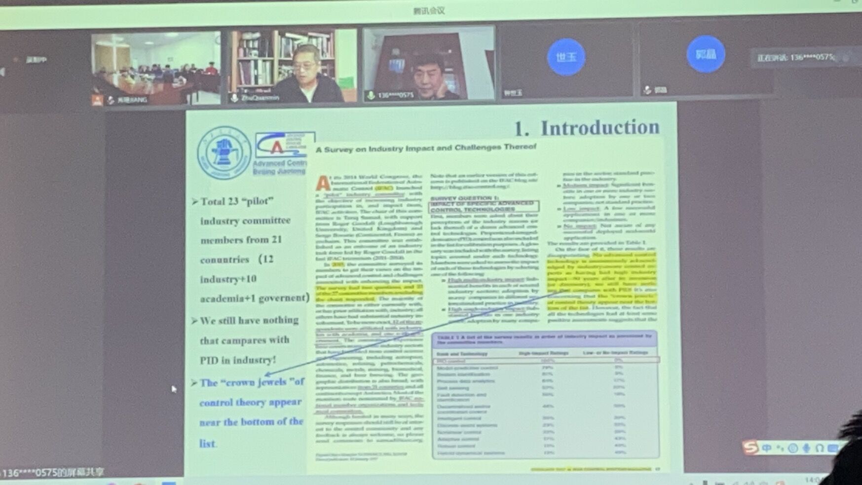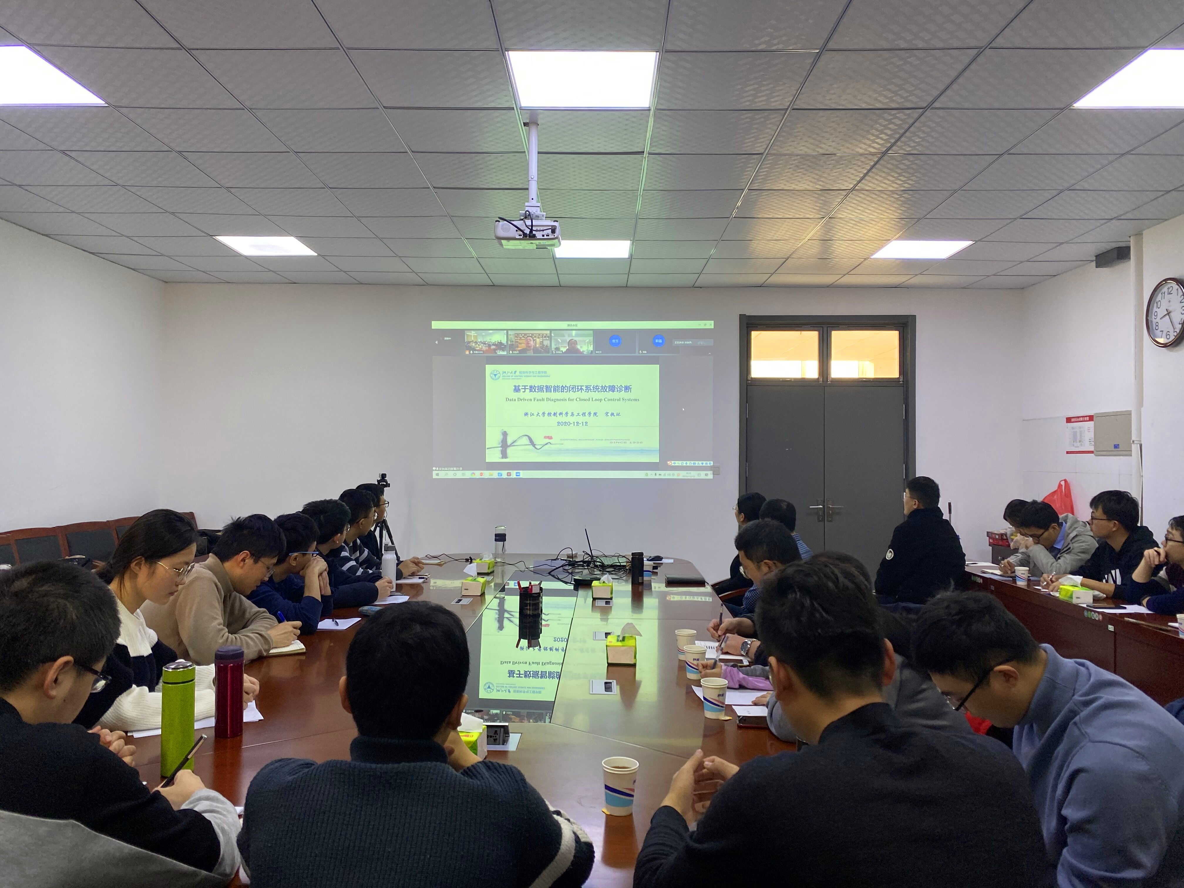 会议期间,来自英国伦敦大学、英国西英格兰大学、英国肯特大学、阿联酋阿布扎比哈里发科技大学、浙江大学、上海交通大学等海内外知名专家学者就大规模复杂过程领域中复杂系统建模与控制问题的新进展和热点进行了交流。研讨会共举行10场高水平学术报告,内容主要涉及分布式可重构预测控制系统设计与综合、基于数据智能的闭环系统故障诊断、红外热成像复合材料缺陷检测方法、线性离散时变随机系统的有限时间稳定方法、基于多元统计的过程监测、无模型自适应控制和发展、滑模控制中的频域方法、利用滑模方法分析细菌增殖的控制机制、有理化模型辨识与控制、分散控制的发展与应用等。