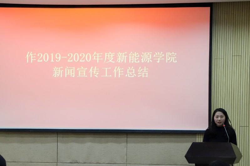 获奖代表、薪火传媒中心主任丁元贺以学生的视角讲述学院宣传工作的建设过程。他说道,薪火传媒中心在成立之初曾遇到许多困难和阻力,但在学院领导的关心下、宣传团队的通力合作下取得了学校的认可,成长为为学院发声、讲学院故事的中坚力量。期间,他着重提到过去的荣誉是对过去工作的肯定,薪火传媒中心会一如既往、戒骄戒躁、不断前行,打造出yl88858永利中国薪火传媒中心的宣传工作品牌,讲好新能源的新故事。