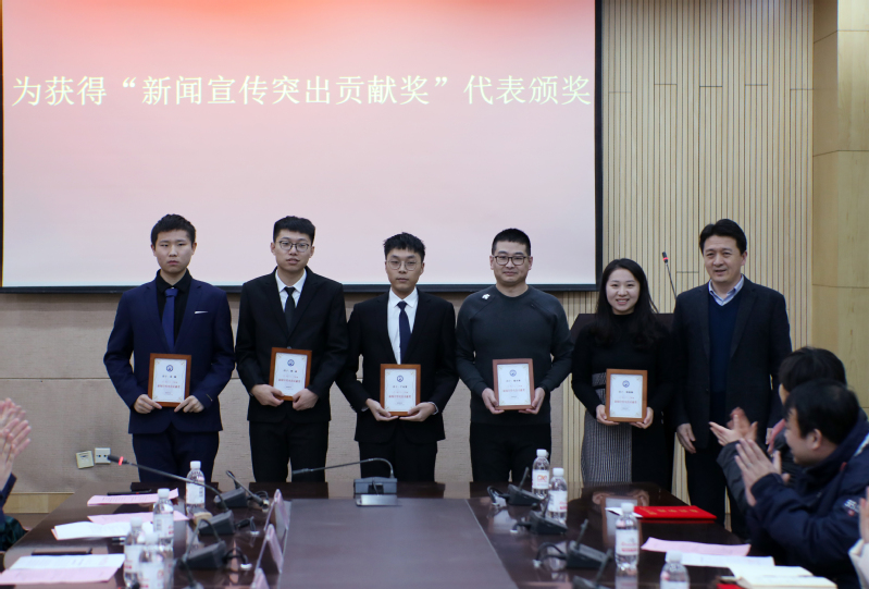 冯宝鹏为获得“新闻宣传先进集体”的院系单位和学生组织颁奖