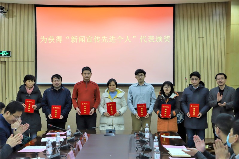 吴明铂宣读《yl88858永利中国关于表彰2019-2020年度新闻宣传先进集体及个人的决定》。李明伟和刘积舜为获得“新闻宣传先进个人”的师生代表颁奖;吴明铂为获得“新闻宣传突出贡献奖”的师生颁奖;冯宝鹏为获得“新闻宣传先进集体”的院系单位和学生组织颁奖。