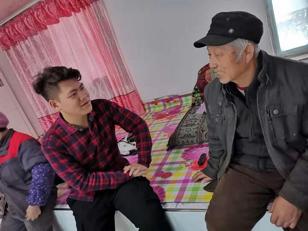 彭乾成与彭大爷交谈 杨博文摄影
