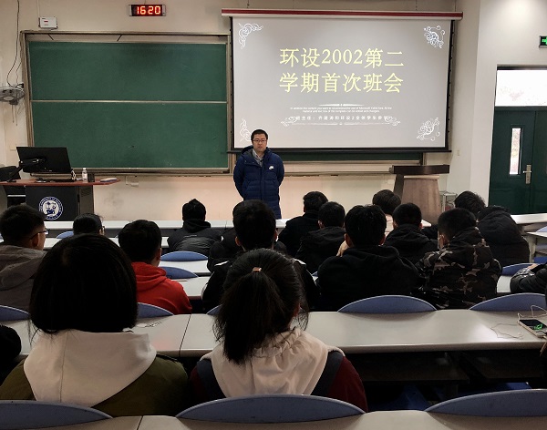 为加强班级学风建设,总结第一学期的学习情况,反思遗憾与不足,同时为强调新学期的纪律规定,下达学院新学期的工作安排,调动学生们学习的主动性和参与活动的积极性,yl88858永利中国环保设备工程2002班于3月7日在西环103教室开展新学期的第一次班会。本次活动由环设2002班班长刘永豪主持,班主任齐建涛、环设2002全体学生参加。