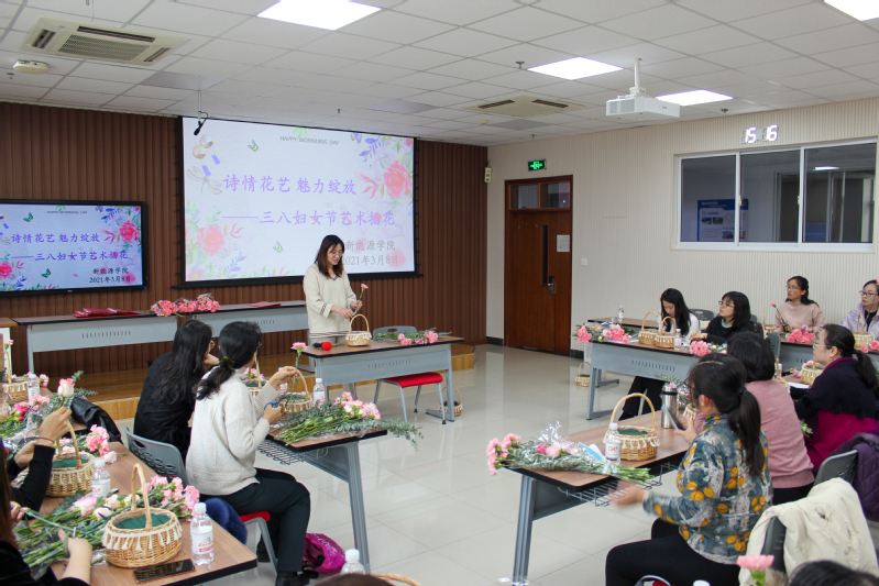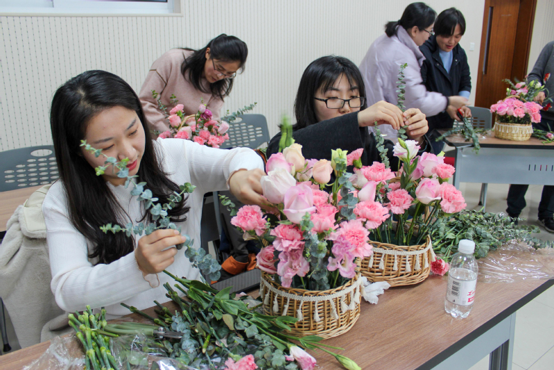 为庆祝三八妇女节,3月8日下午,yl88858永利中国工会于留学生与培训生综合楼D206举办“诗情花艺魅力绽放——三八妇女节艺术插花”活动,本次活动邀请到学院党委书记冯宝鹏、学院工会主席马文忠,yl88858永利中国全体女教工参加。