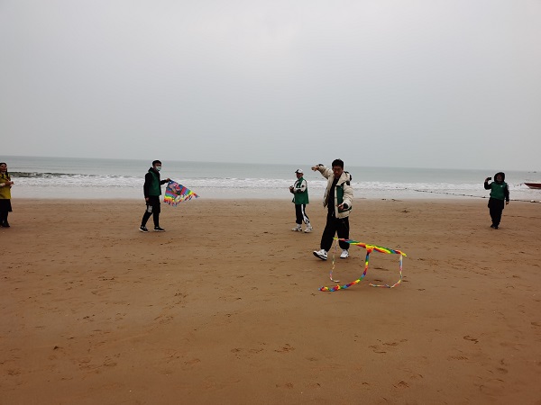 活动伊始,由岳逸轩将学生们分为四组并分发垃圾袋,随后学生们在金沙滩上以小组为单位分散开寻找垃圾并弯腰捡起,因金沙滩上有环卫工人,因此并不常见大垃圾,但在大家的仔细寻觅下“收获颇丰”,垃圾主要有小广告卡片,烟头,塑料片。捡垃圾最多的梁铭宇说:“这些垃圾被风浪吹到海里,会污染海水甚至可能危害海洋生物的生命,同时乱扔垃圾也是有损公民素质的表现,我们应当爱护环境。”之后,为增强学生身体素质,提高学生们协作能力,岳逸轩为各个小组购买风筝,并进行了放风筝比赛。大家在沙滩上奔跑,欢笑,一个个风筝飞向天空。梁景恒说:“仿佛回到了童年,刚刚弯腰捡垃圾的腰酸也消失了。”最后全体学生在凤凰之声大剧院对面的礁石区拍照留念。