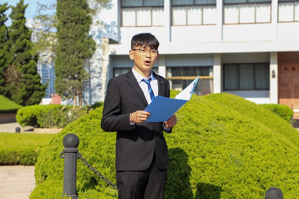 于振兴首先带领学生党员参观烈士纪念堂及烈士事迹陈列馆。进入烈士纪念堂,正面悬挂着王尽美、邓恩铭、李慰农、郭隆真等著名烈士的遗像;东西两侧分列10个展橱,陈放着全套《山东省革命烈士英名录》。厅内环挂着青岛市党、政、军领导机关和人民团体敬献的挽联。在展厅内,讲解员向学生党员们介绍多名先烈的革命事迹。随后学生党员与烈士群雕前集合,集体默哀三分钟,向烈士表达沉痛悼念之情。接着,学生党员们在于振兴的带领下重温入党誓词。最后,所有人参观了烈士纪念碑,细读碑文,了解革命先烈的光荣事迹和革命的艰辛历程。参与活动的学生党员胡文鑫在活动结束后表示道:“此次参观烈士陵园,不仅学生党员对革命先烈的事迹有了新的了解,还激励我们坚定共产主义理想和为人民服务的信念,增强了我们的责任感。”