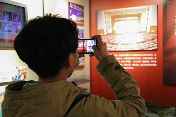 学生党员在记录党的发展历程 吴拨摄