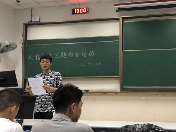 为全面贯彻落实学校考风考纪要求,营造良好诚信学风,督促学生尽快进入期末复习状态,环保设备工程1801班于6月7日在西环203开展了以“踏实诚信,从容备考”为主题的班会,环设1801班全体学生参加会议。