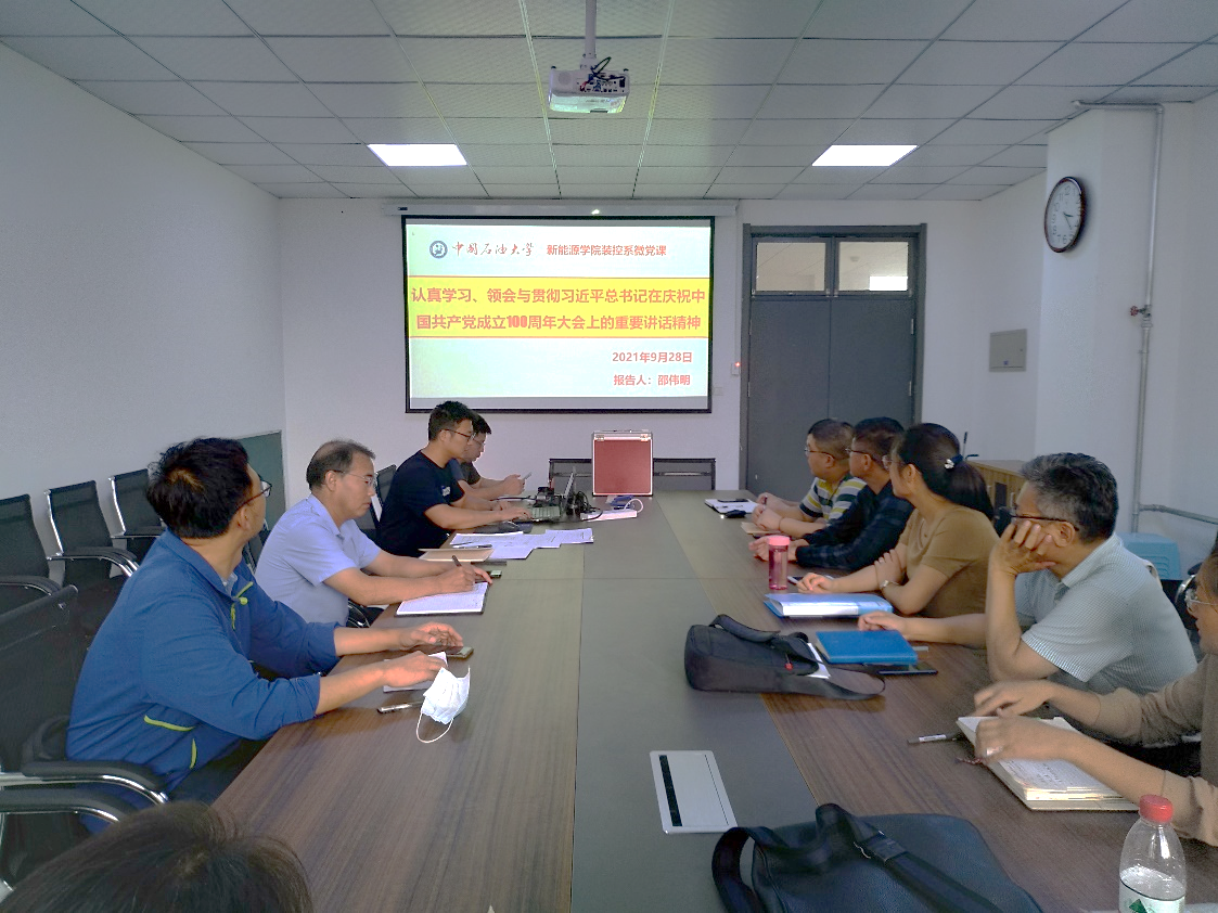 9月28日下午,装控系党支部在综合楼C431开展主题党日学习,活动由值月党员邵伟明主持,学院专职组织员张洪泉列席本次活动。