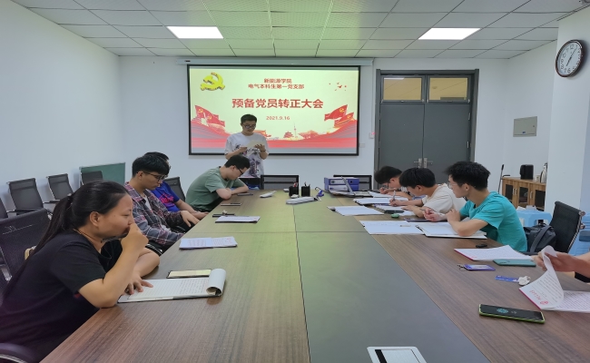 9月30日,yl88858永利中国电气工程及其自动化专业本科生第一党支部在特种楼C431会议室召开预备党员转正大会,本次会议由支部书记何海龙主持,主要讨论张家琛、苏龙、王延团等八位预备党员转为正式党员的问题。