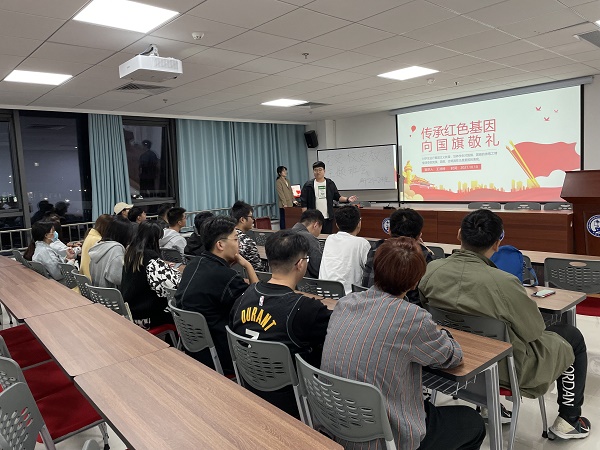 此次班会的主题是“传承红色基因,向国旗敬礼”,对学生进行爱国主义教育,培养学生对国旗、国徽的崇敬之情,懂得尊敬国旗、国徽,会唱国歌也是爱国的表现。在认识红色基因方面,班长王润坤首先向大家介绍红色基因是一种革命精神的传承。到今天,在这个承前启后,继往开来的新时代,以红船精神,井冈山精神,长征精神,延安精神,西柏坡精神等为代表的红色精神,值得一以贯之地坚守与发扬,因为它清晰地告诉我们——今天的中国从何处来,又往何处去。其次,王润坤从国庆节的基本特征、功能体现及国家象征三个方面进行国庆节这个重要节日的相关知识普及。然后,对国旗、国徽、国歌的有关知识进行学习,国旗、国徽、国歌,它们是最崇高、最神圣、最亲切的名字,此次会议主要从它们象征的意义来对其进一步了解。最后,全体同学面向国旗敬礼,此次党史校史教育主题班会顺利结束。