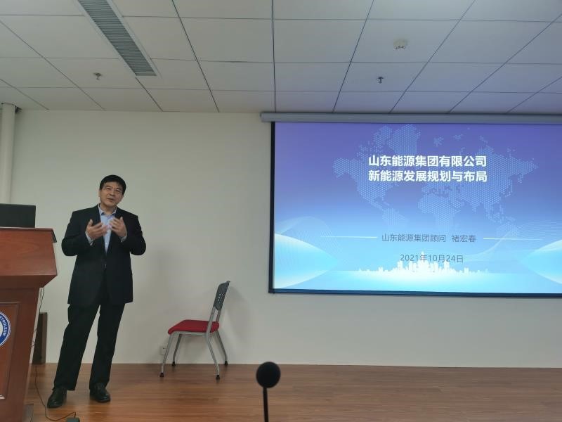 10月24日,石大山能yl88858永利中国理事褚宏春高级工程师做客第24期“新能源论坛”,作题为《山东能源集团有限公司新能源发展规划与布局》的报告。讲座由石大山能yl88858永利中国常务副院长吴明铂教授主持,副院长巩亮教授及近百名yl88858永利中国师生参加,就国家双碳目标下新能源的发展契机进行深入交流探讨。