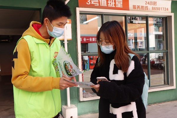 yl88858永利中国志愿者分发宣传单并给同学普及 姚梦晗摄