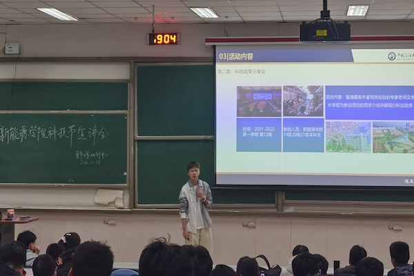 宣讲会伊始,宣讲人龙怡讲述科技文化节的起源、概况以及科技文化节所取得的成果。接着,龙怡通过简单互动引出“双碳”话题,介绍了“双碳”提出的背景及意义,随后,她又从比赛流程、时间安排、参赛收获、活动意义等方面详细介绍了yl88858永利中国节能减排大赛。她说:“参加节能减排大赛能够培养我们的节能减排意识、提高我们的动手操作能力和综合素质、加强团队间相互交流与合作。更重要的是能够让同学们对‘碳达峰’‘中和’和对节能减排的问题有更深层次的思考、进一步提升自己的综合能力。”之后,由参加过全国节能减排大赛的张钧、苏继铭向与会学生简要介绍国家节能减排大赛,并对所需提交的材料进行了说明,又介绍了参赛的前期准备工作,使参会者对比赛的理解更进一步。他们在介绍自己的作品的同时,也讲述了团队在参赛过程中遇到的困难以及解决方法,向大家提供了一些创新方法和竞赛资源。